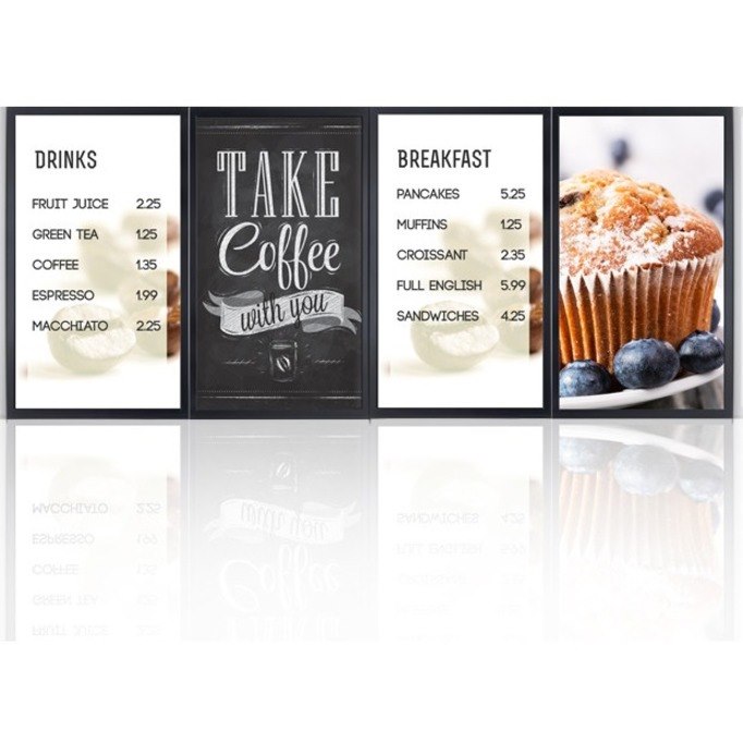Business owners are always looking for a way to cut costs and streamline tedious procedures. When factoring recurring expenses associated with printing, delivering, installing and disposing of static menu boards a digital menu board becomes a more cost effective option in saving money and time. With this digital Menu Board solution, the cost associated with static light signs are virtually eliminated.